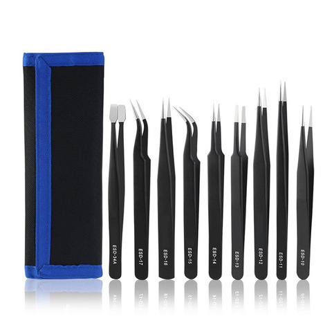 Set di 9 Pinzette Industriali in Acciaio Inossidabile ESD con Punta Liscia e Rifinita per Riparazioni di Dispositivi Mobili