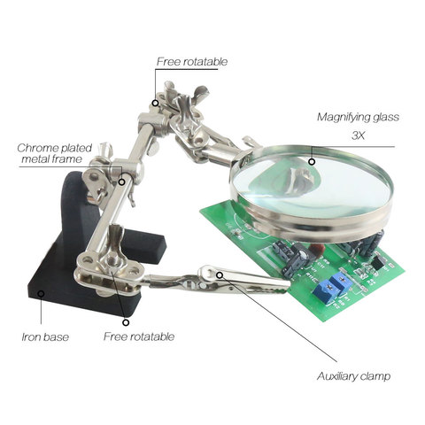 Aiuto mano ausiliare morsetto Clip lente di ingrandimento supporto ferro con lente di ingrandimento per saldatura e saldatura riparazione Rework